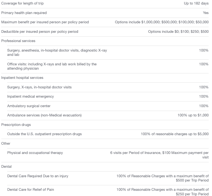 Voyager Choice plan has the most coverage. Current health insurance is required.